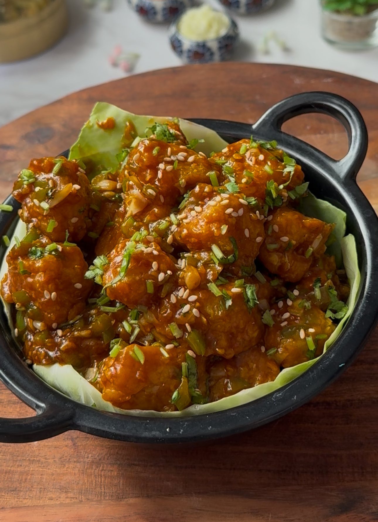 - Switch off the flame. Garnish with fresh coriander. Serve hot with fried rice or noodles—and enjoy a healthier Manchurian that doesn’t judge your diet choices 😉¼ cup Coriander